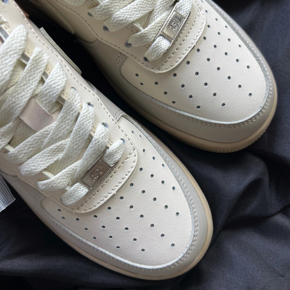 Được làm từ chất liệu da hoặc da lộn chất lượng cao, giày AF1 ba màu mang đến sự bền bỉ và đẳng cấp. Mẫu giày này được thiết kế với ba màu sắc độc đáo và phối hợp tinh tế, gồm màu trắng, xám và da nâu, tạo nên sự tươi mới và nổi bật.