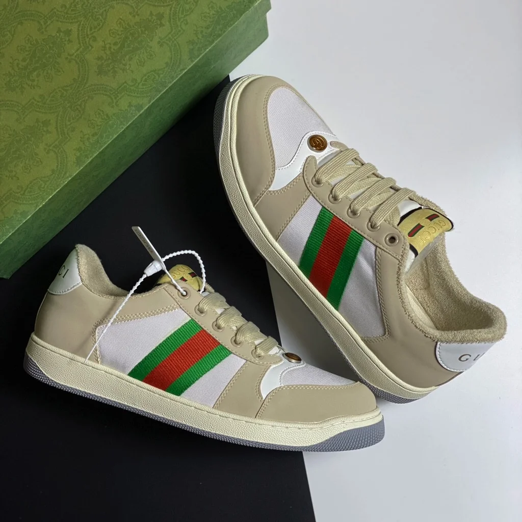 4. **Biểu tượng thương hiệu:** Logo Gucci nổi bật ở phía bên giày tạo nên điểm nhấn thương hiệu độc đáo, thể hiện sự sang trọng và phong cách của bạn.