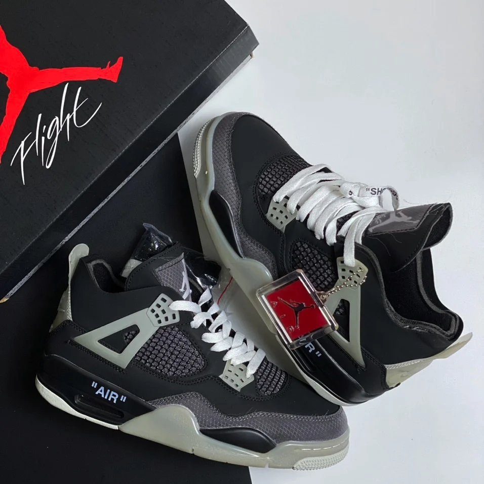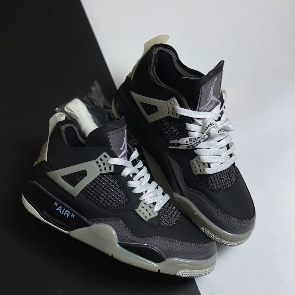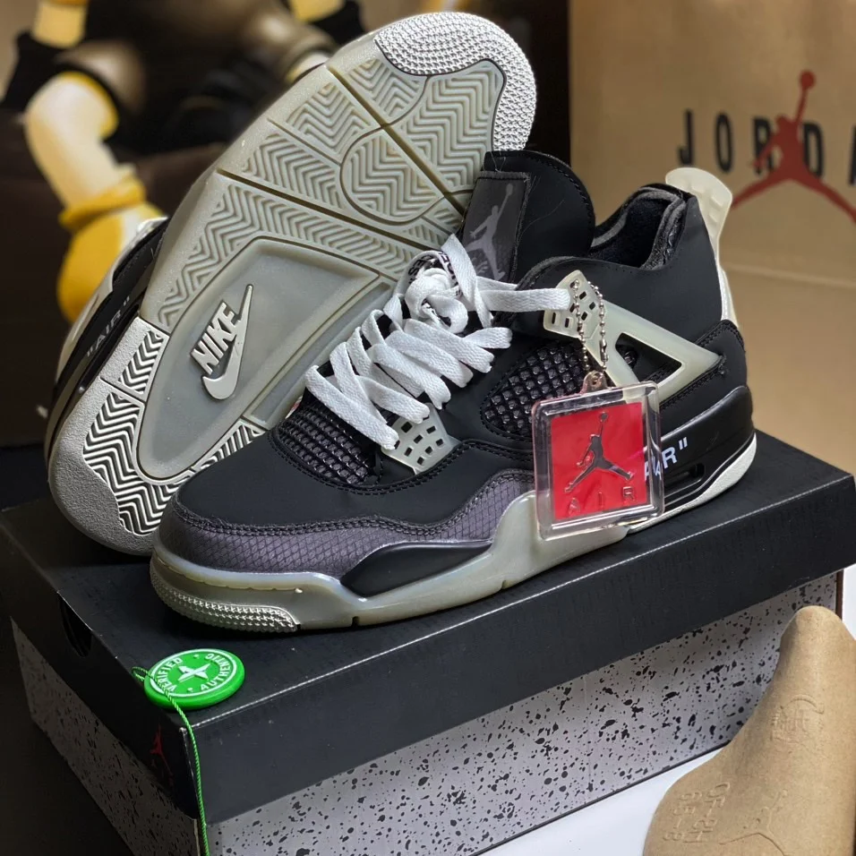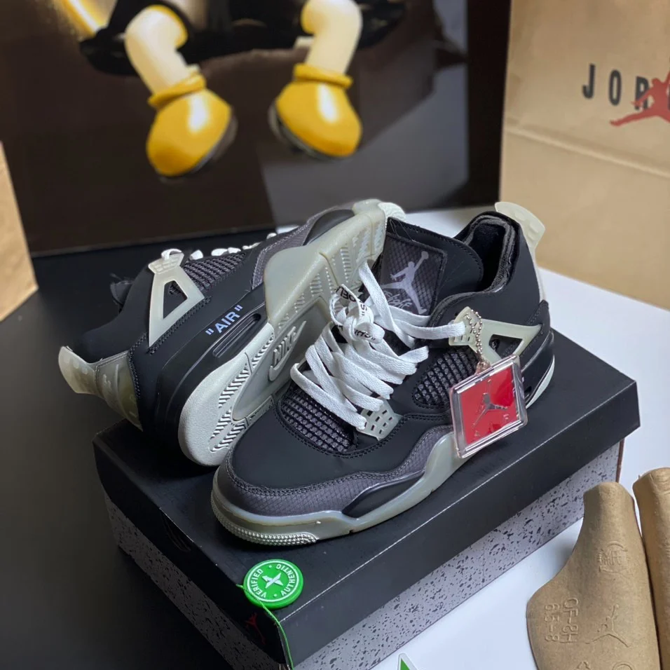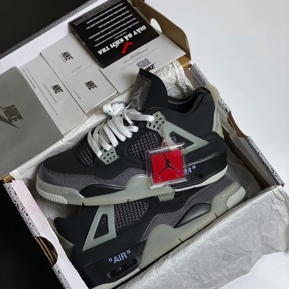 Giày Jordan 4 Off White Black là một phiên bản đặc biệt trong dòng sản phẩm Air Jordan 4 của Nike, được hợp tác với nhãn hiệu thời trang Off-White của nhà thiết kế Virgil Abloh. Đôi giày này mang đến sự phá cách và phong cách độc đáo với màu đen và các chi tiết thiết kế đặc trưng của Off-White.