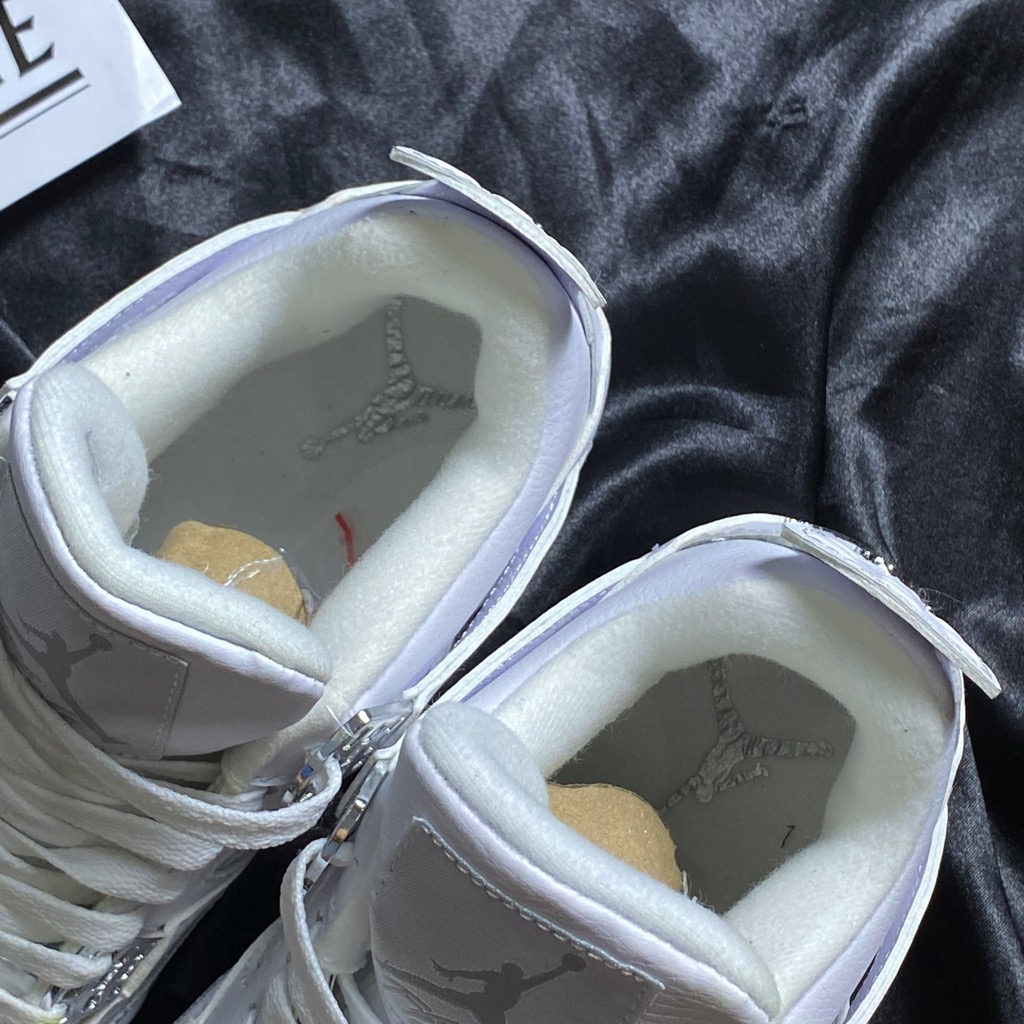 3. Đặc điểm đặc trưng: Giày Jordan 4 trắng full giữ nguyên các đặc điểm đặc trưng của dòng Air Jordan 4, bao gồm mũi giày và gót giày vuông góc, hệ thống dây buộc và các chi tiết đồ họa.