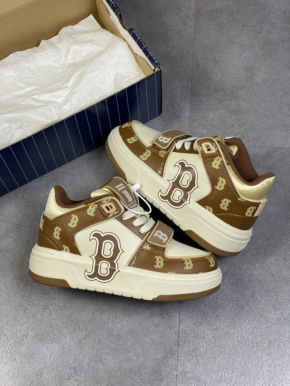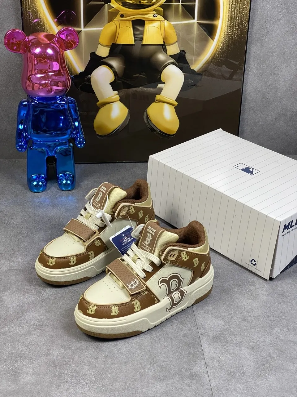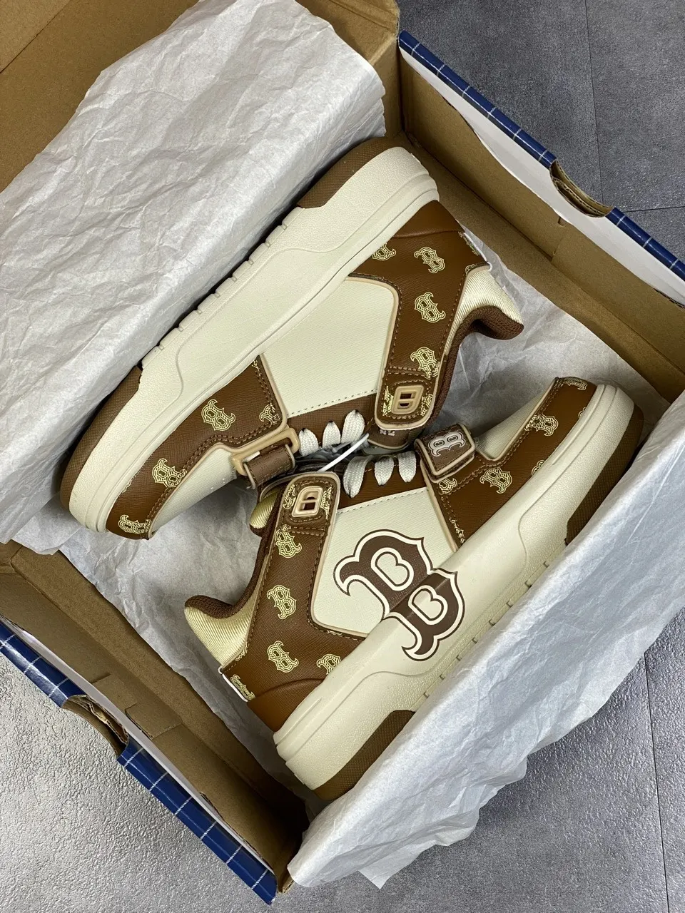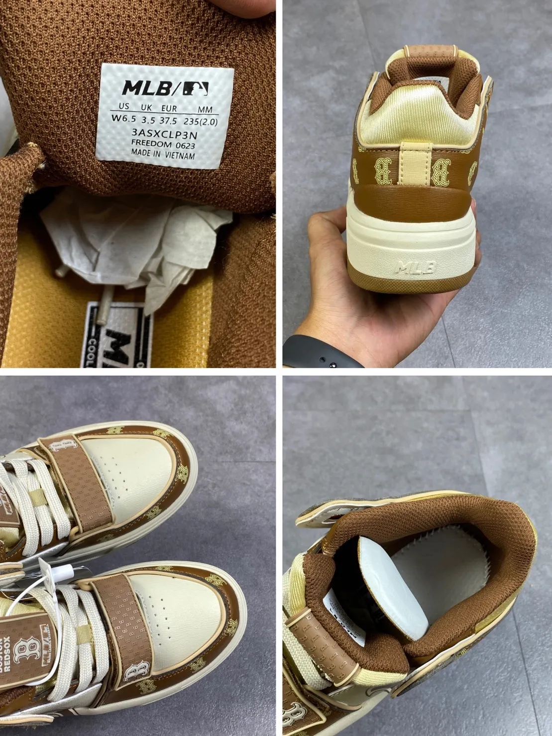 - Thiết kế: Kiểu dáng mid-top cổ điển với logo “B” đặc trưng của MLB được thêu nổi bật trên thân giày.