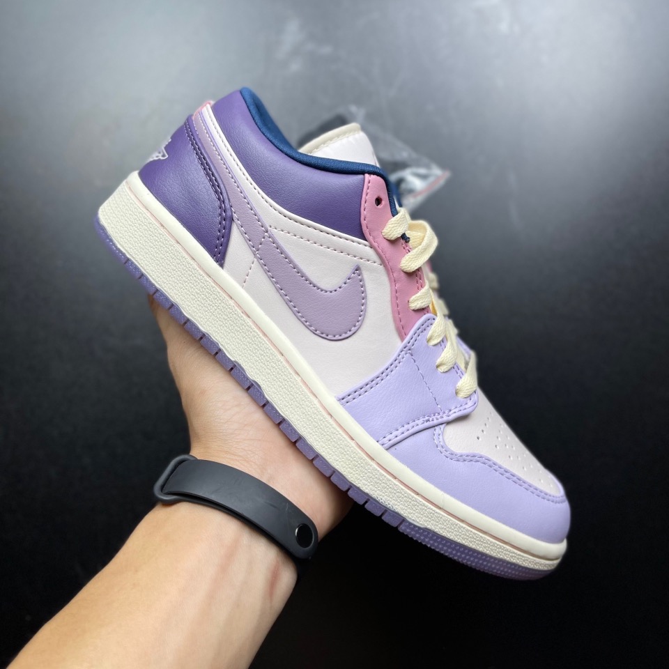 Giày Nike Jordan 1 low pastel purple hiện nay là một trong những mẫu giày Nike Air Jordan cổ thấp đang được giới trẻ săn đón nhiều nhất. Kiểu dáng unisex phù hợp với nam và nữ, cách phối màu xen kẽ giữa các chi tiết vô cùng đa dạng và đặc sắc tạo nên điểm nhấn hoàn hảo mang nét đặc trưng riêng. Các đường nét và chi tiết được may rất tỉ mỉ, tổng thể hài hoà chiếm trọn tình cảm của các bạn trẻ hiện nay.