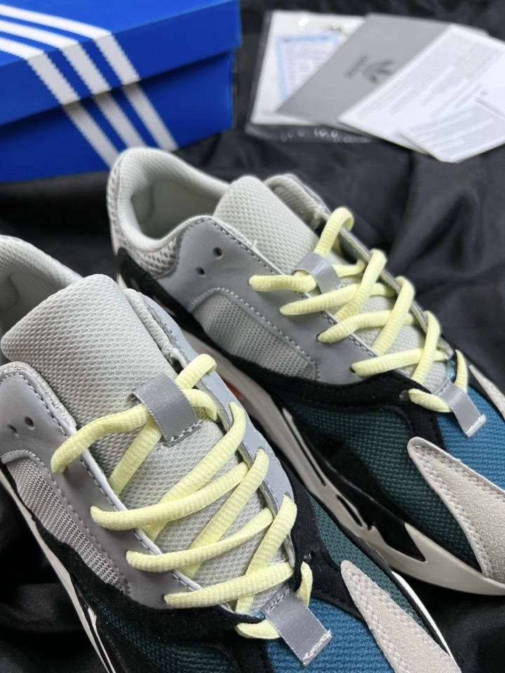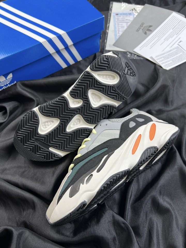 Giày Yeezy 700 Wave Runner có thiết kế độc đáo với màu sắc tươi sáng và độc đáo. Phần trên giày được làm bằng chất liệu da và lưới thoáng khí, giúp đôi giày có khả năng thở và thoải mái khi sử dụng. Điểm nhấn của giày là đế giày lớn với công nghệ Boost, mang lại sự thoải mái và đàn hồi cho người sử dụng.
